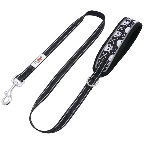 La correa calavera XT-DOG combina estilo y resistencia con su diseño de calaveras en blanco y negro. Fabricada con materiales resistentes, incluye un mango acolchado para mayor comodidad durante los paseos. Sus 2cm de ancho y 120cm de largo son ideales para mantener un control adecuado sobre tu mascota. Soporta hasta 231kg en pruebas de tracción, asegurando la máxima seguridad y confianza en su uso.