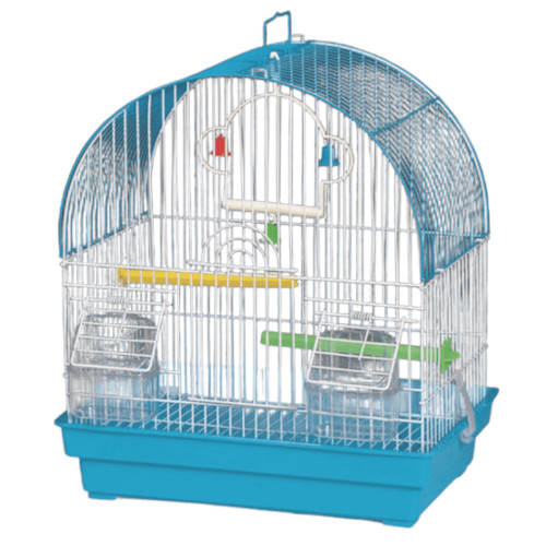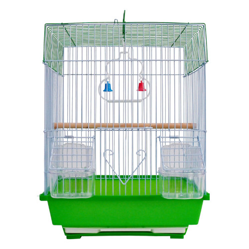 Jaula para pajaros de 33.5 x 24 x 37.5 cm de altura. Los colores y las formas pueden ser variados según existencias, verde, rojo, azul o blanca.